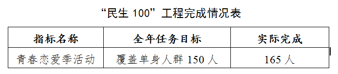 根据《中共株洲市委办公室 株洲市人民政府办公室关于印发<2021年“民生100”工程实施方案>的通知》(株办〔2021〕10号)和《株洲市统计局关于认真做好 2021 年全市“民生100”工程数据评估认定工作>的通知》(株统计通〔2021〕74号)等文件要求,现将共青团茶陵县委员会2021年“民生100”工程完成情况予以公示。