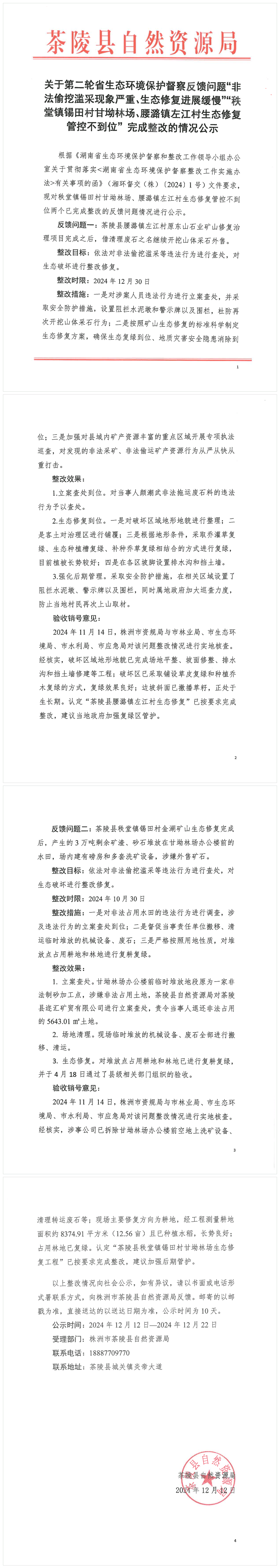 2.茶陵县秩堂镇锡田村甘坳林场生态修复问题验收销号意见