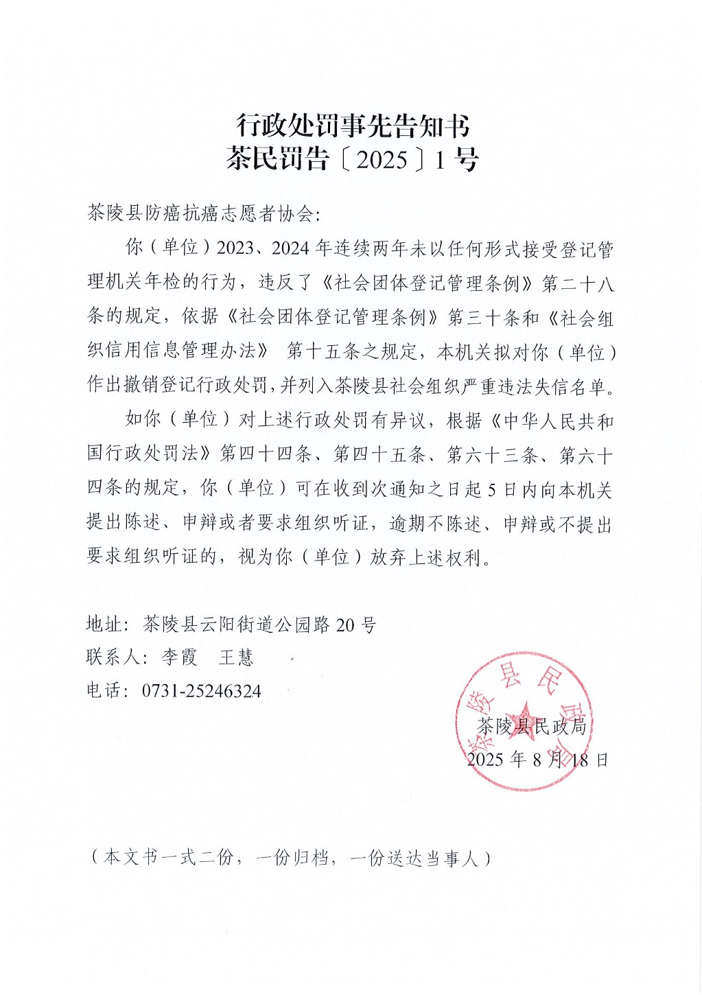 你(单位)2023、2024年连续两年未以任何形式接受登记管理机关年检的行为,违反了《社会团体登记管理条例》第二十八条的规定,依据《社会团体登记管理条例》第三十条之规定,本机关拟对你(单位)作出撤销登记。