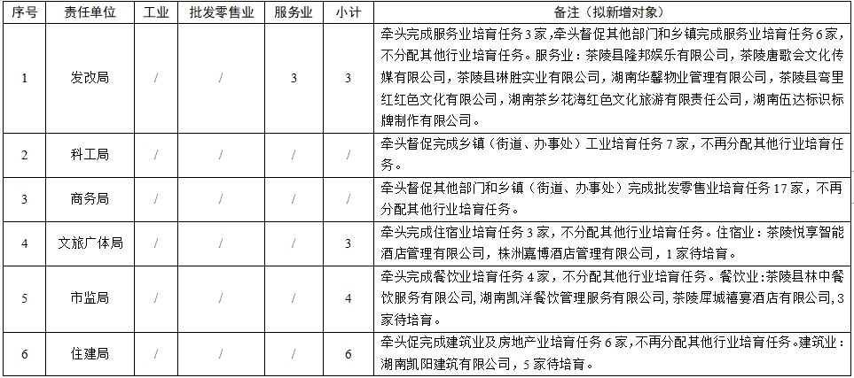 注:行业部门牵头本行业“四上”企业培育工作,实现本行业任务目标。