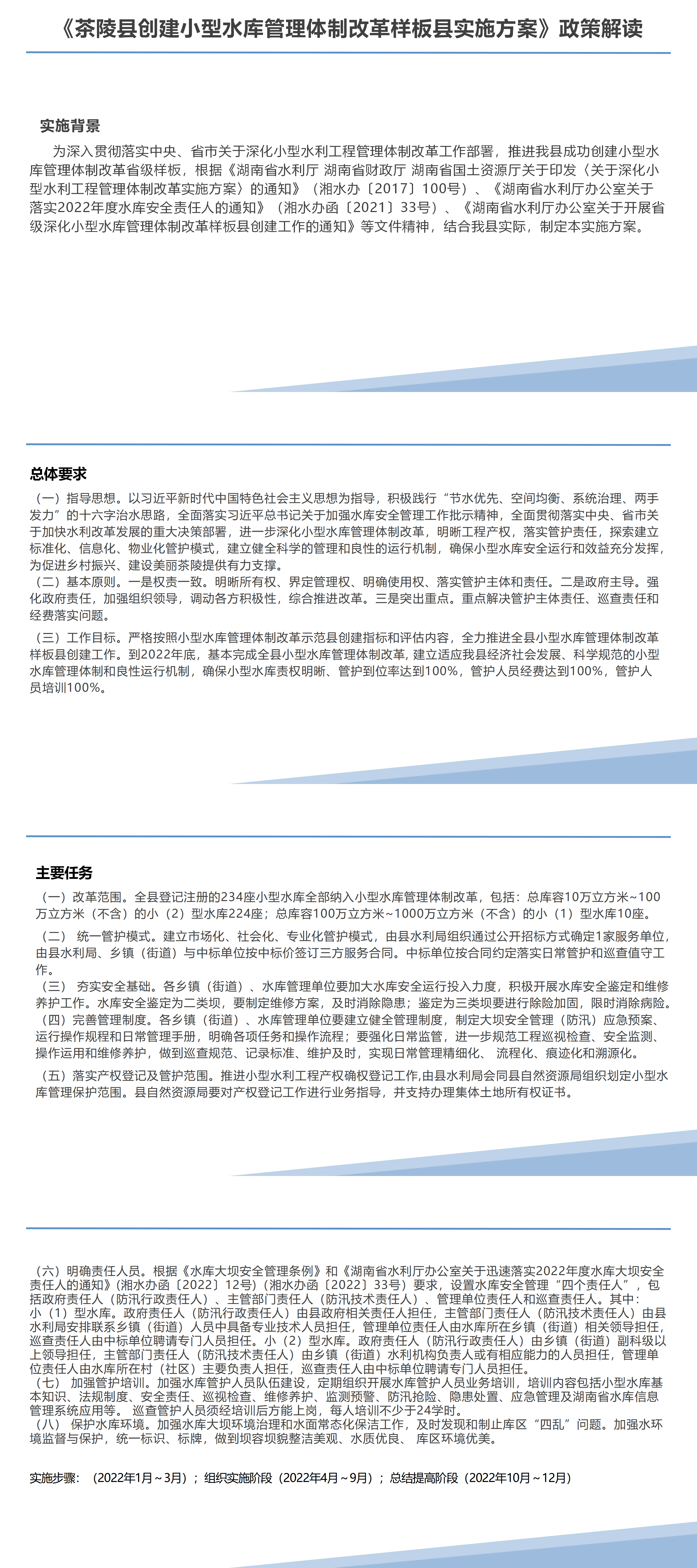 文件链接:茶陵县人民政府办公室关于印发《茶陵县创建小型水库管理体制改革样板县实施方案》的通知