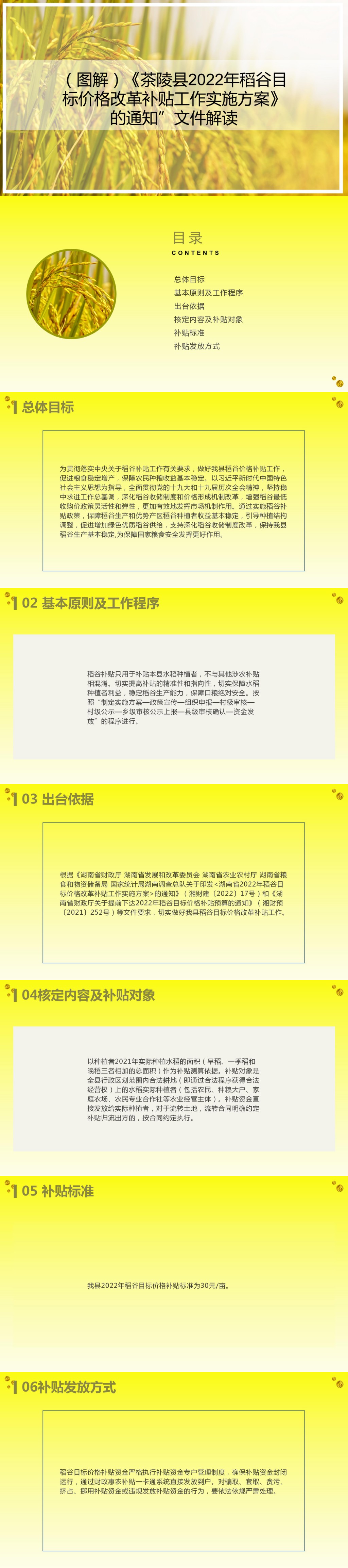 文件链接:茶陵县人民政府办公室关于印发《茶陵县2022年稻谷目标价格改革补贴工作实施方案》的通知