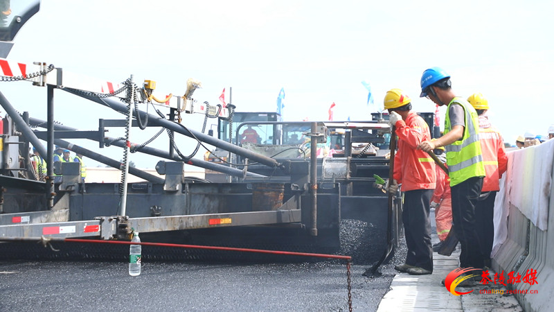 9月19日上午,在茶常高速(茶陵段)施工现场,机械轰鸣,车来车往,工人们顶着烈日,正在对沥青上面层试验路进行摊铺,经过铺料、初压、复压等工序,一道整齐的沥青路面就呈现在眼前。