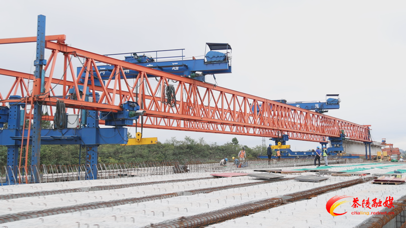 广西路桥集团茶常1-2标项目经理文榕宁说:“今天已经完成了跨武深高速的所有梁片架设工作,预计明天可以把全线所有的梁片架设完成。”