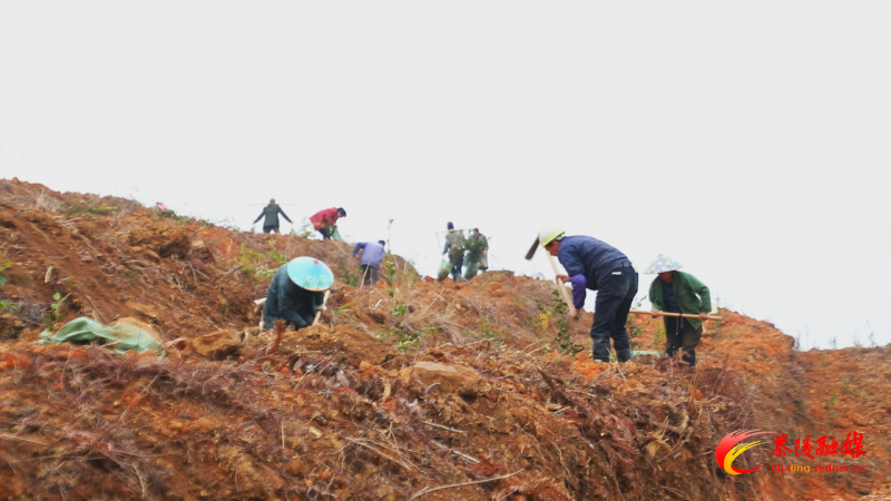 2月25日,在严塘镇上合村,村民们趁着雨后土地松软,抢抓时间移栽油茶苗,3天内,这里将种下1.9万棵高产油茶苗。