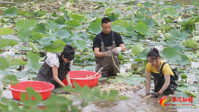 藕尖与藕不可兼得,采收完藕尖的池塘一般不会开花,不结莲蓬,也不会长藕,陈立军就会在池塘里面放一些鱼苗、泥鳅、小龙虾进行套养,来增加额外收入。