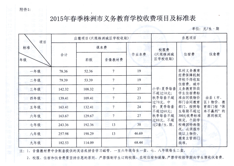 现将株洲市物价局、株洲市财政局、株洲市教育局、株洲市农民负担监督管理办公室《关于2015年春季株洲市中小学收费事项的通知》(株价费[2015]15号)文件转发给你们,请遵照执行。并结合我县实际情况,将有关事项明确如下: