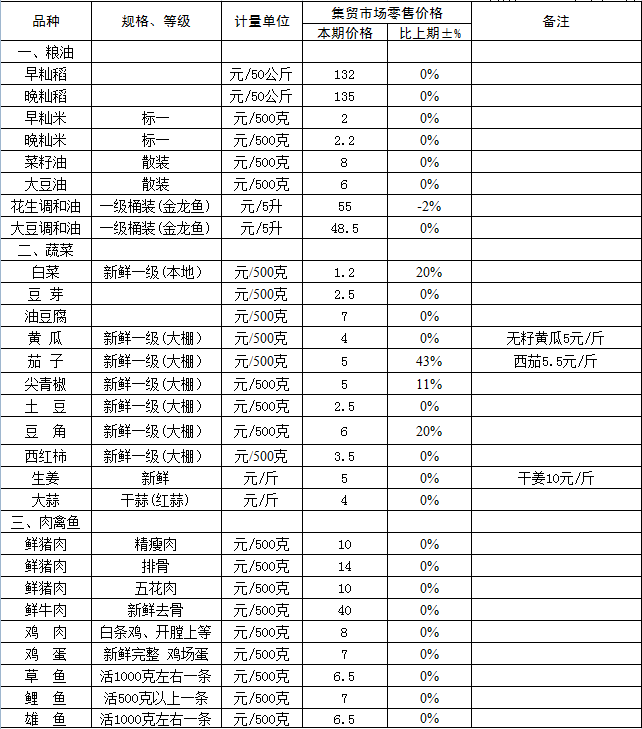 1、粮油价格基本持平;