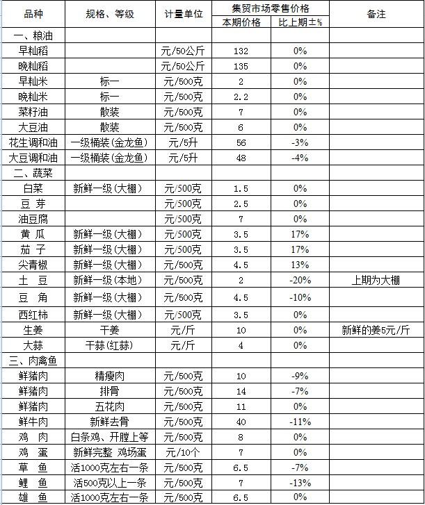 2、蔬菜价格受气候影响部分大棚蔬菜价格上涨,土格因本地土豆上市价格下跌;