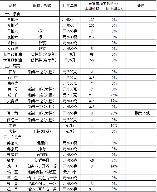 2、蔬菜价格中茄子、尖青椒、豆角受近期天气转凉影响,上游供给减少价格略有上浮;