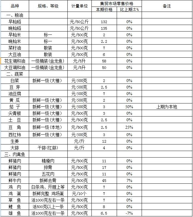 2、蔬菜价格中茄子、豆角受本地产量的持续减少,价格有所上升;
