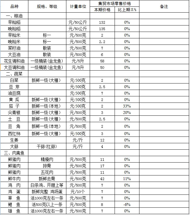 2、蔬菜价格中茄子、青尖椒受本地产量的减少,价格略有上升;
