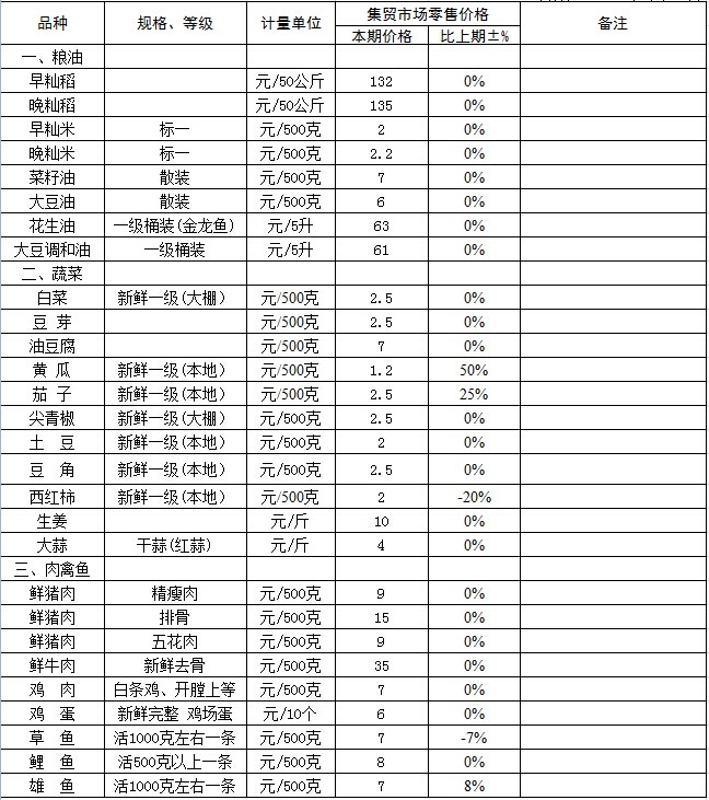 附注:粮油食品价格涨跌情况说明: