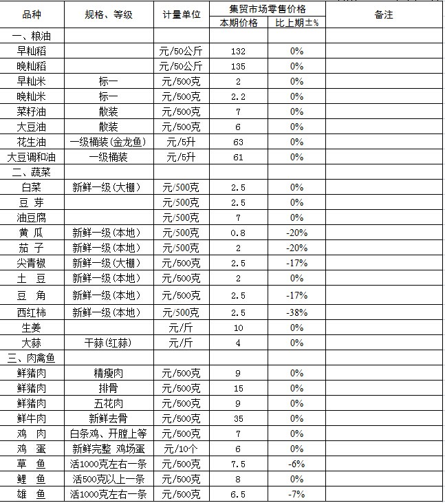 2、蔬菜价格中大部分因为本地菜上市价格下降;