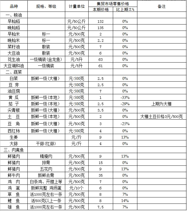 2、蔬菜价格因部分本地蔬菜上市有所下降。