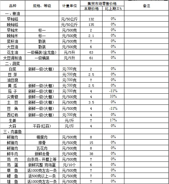 附注:粮油食品价格涨跌情况说明: