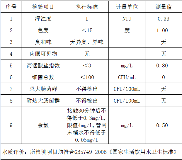 单位:茶陵县自来水公司 样品名称:出厂水 检测日期:2015.7.12