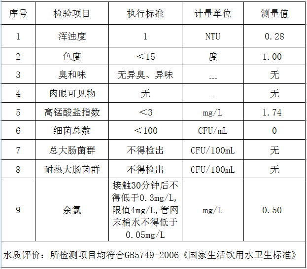 单位:茶陵县自来水公司 样品名称:出厂水 检测日期:2015.7.4