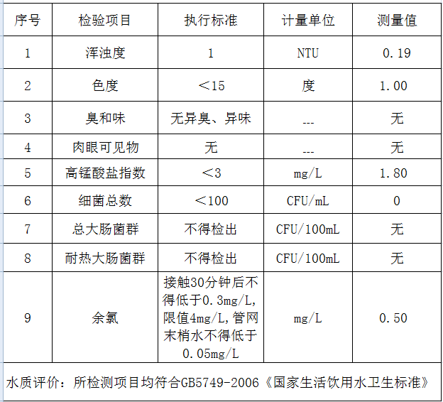 单位:茶陵县自来水公司 样品名称:出厂水 检测日期:2015.7.1