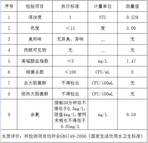 单位:茶陵县自来水公司 样品名称:出厂水 检测日期:2015.6.26