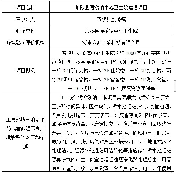 茶陵县腰潞镇中心卫生院建设项目环境影响报告表审批前公示