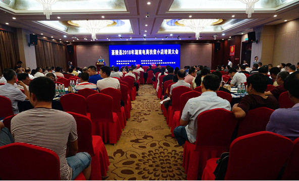 7月25日,茶陵县2018年湖南电商扶贫小店培训大会在华天大酒店召开。全县各乡镇(街道)分管电商扶贫的相关负责人、扶贫专干,市、县驻村工作队队长,68个贫困村书记、电商扶贫站站长,电商企业负责人以及电商从业者等300余人参加培训。