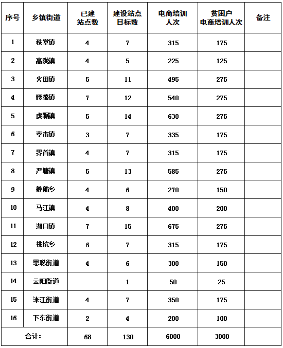 附件:乡镇(街道)电子商务服务站点建设工作、培训工作任务分解表