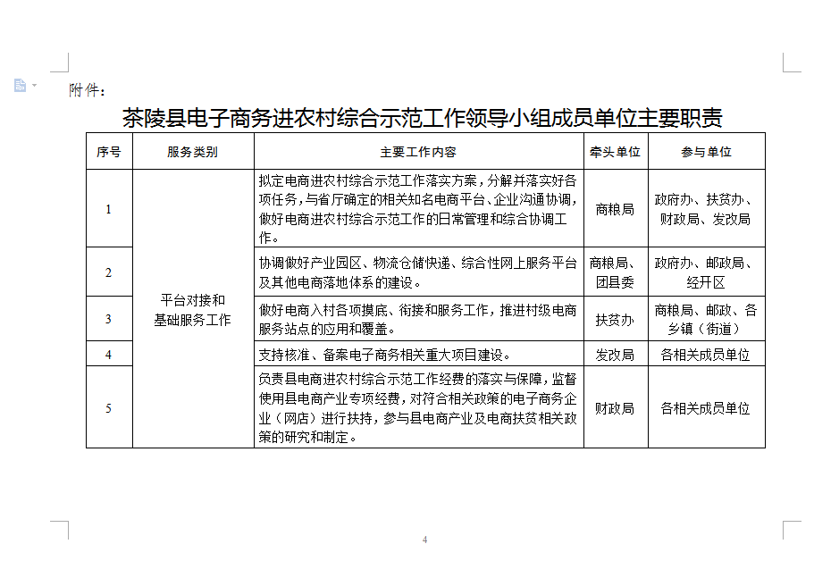 附件:茶陵县电子商务进农村工作领导小组成员单位主要职责