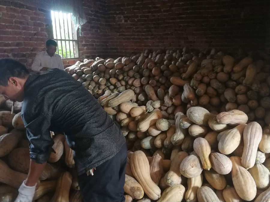 据了解,由于南瓜品种好,今年南瓜与其他农作物比较,体现了独有的优势,在别的农作物减产的情况下,850亩南瓜两季平均亩产4000斤,总产量达340万斤左右,采取订单模式以0.3元/斤的保底价格销往海南、广东等地,产值约100多万元。南瓜成了农民致富的“小金瓜”。