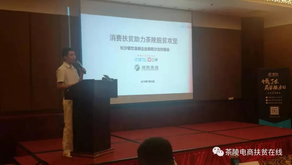 活动现场,茶陵县电子商务公共服务中心郭志刚围绕“消费扶贫助力茶陵脱贫攻坚”向长沙200余家餐饮企业负责人详细介绍了茶陵县概况、特色产业情况、帮扶目的与意义、帮扶方式和流程等。