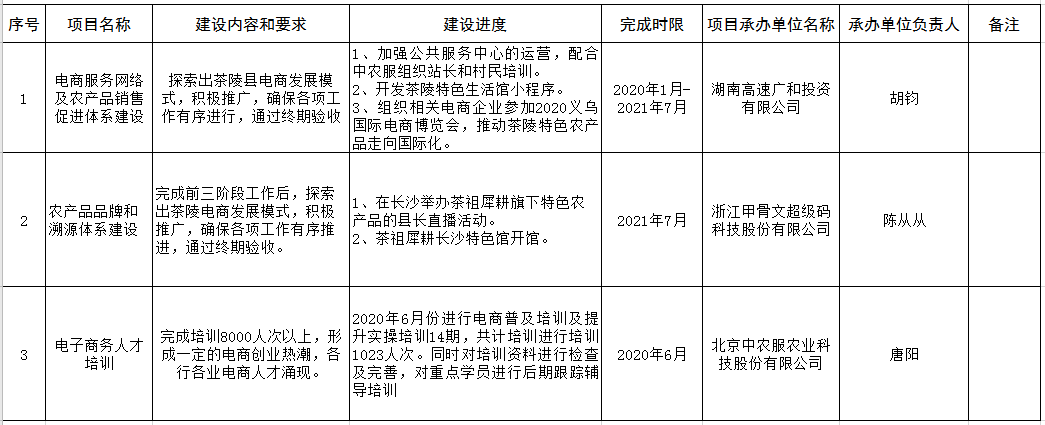 全国电子商务进农村十大建设项目进度表(2020年6月份)(1)