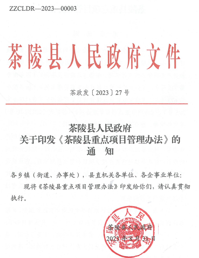 茶陵县人民政府关于印发《茶陵县重点项目管理办法》的通知