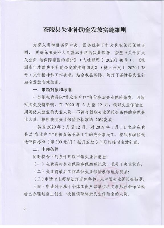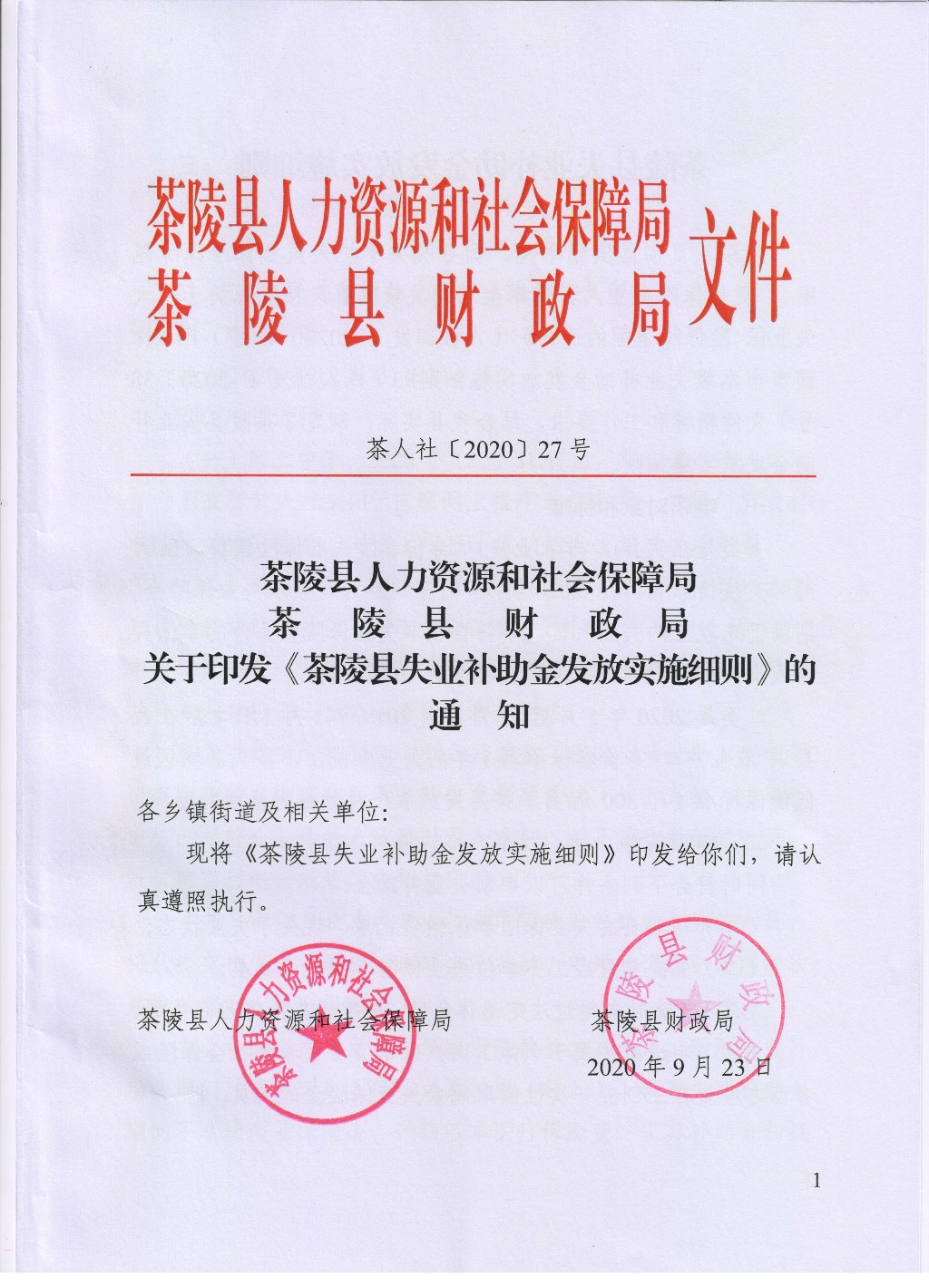 关于印发《茶陵县失业补助金发放实施细则》的通知