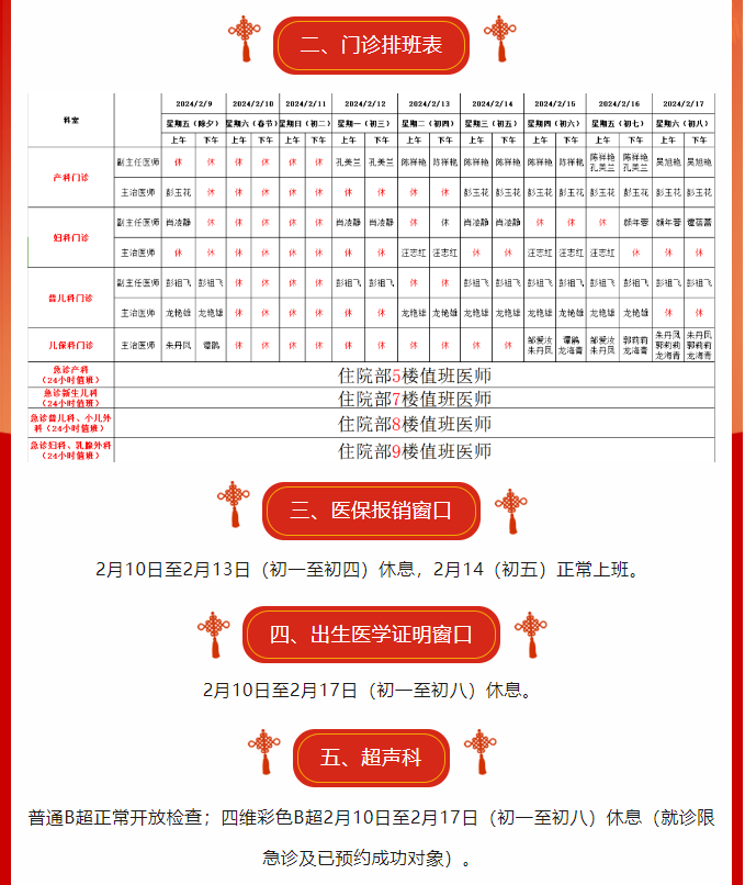 茶陵县妇幼保健院2024年春节假期就诊须知