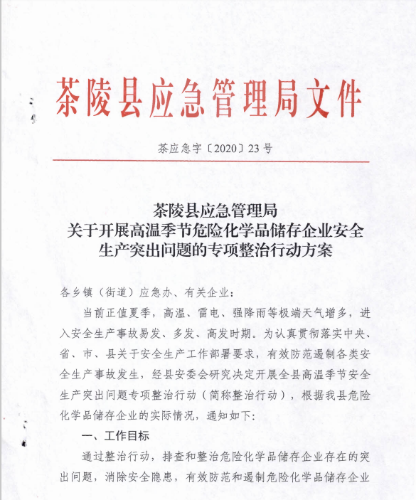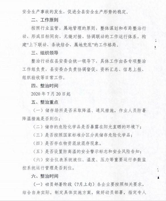 关于开展高温季节危险化学品储存企业安全生产突出问题的专项整治行动方案