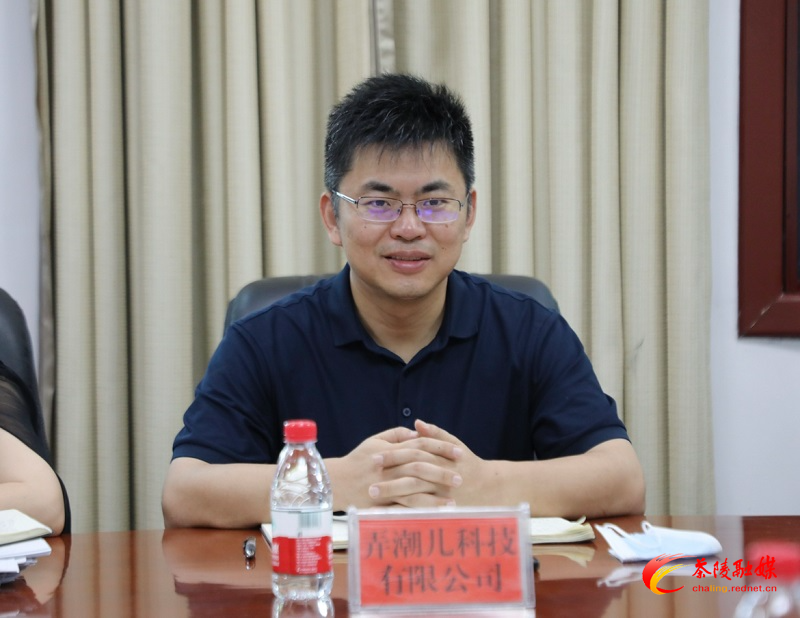 7月26日,茶陵县委书记邓元连与浙江弄潮儿智慧科技有限公司董事长田元一行座谈,吴国旗、苏运良等领导参加。