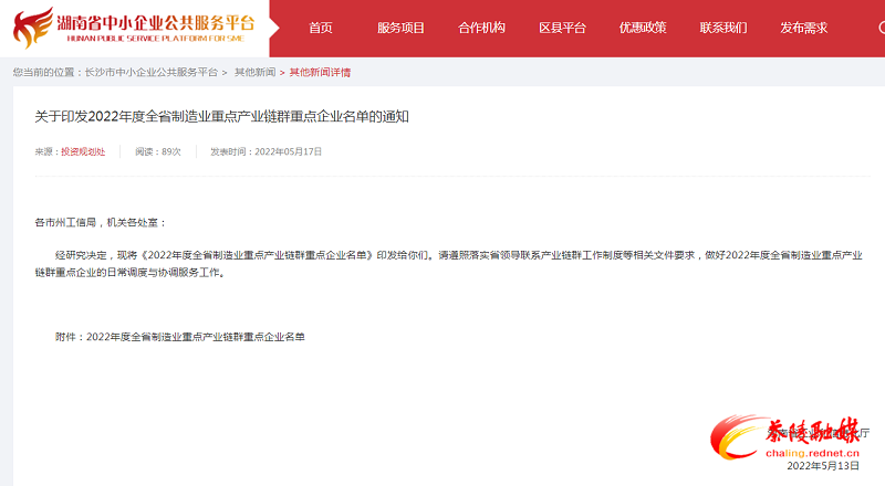近日,湖南省工信厅印发了《2022年度全省制造业重点产业链群重点企业名单》,位于茶陵县的株洲晶彩电子科技有限公司位列名单中,是茶陵首次有企业在全省产业链发展的相关名单中,也是茶陵制造业产业链发展进程中的一个重要突破。