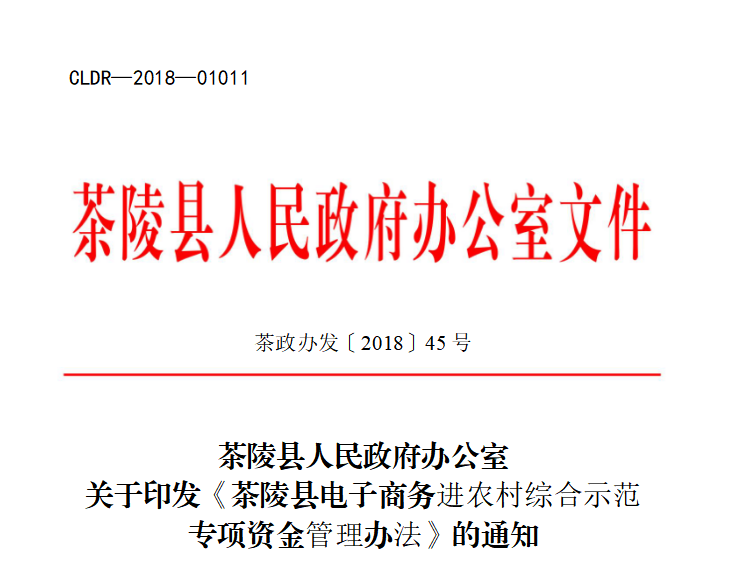 茶陵县人民政府办公室关于印发《茶陵县电子商务进农村综合示范专项资金管理办法》的通知