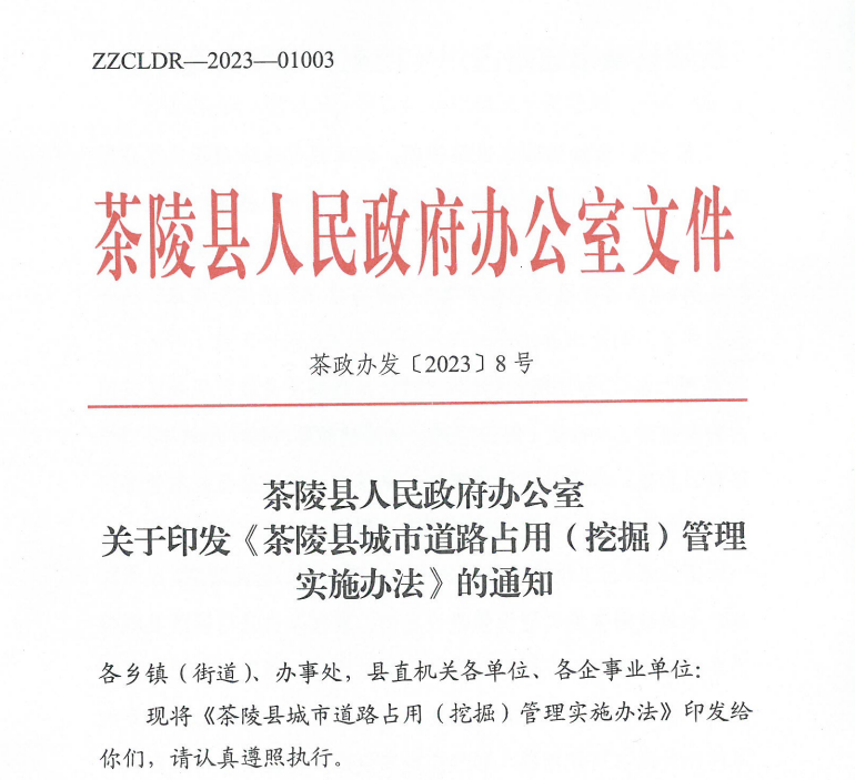 茶陵县人民政府办公室关于印发《茶陵县城市道路占用(挖掘)管理实施办法》的通知