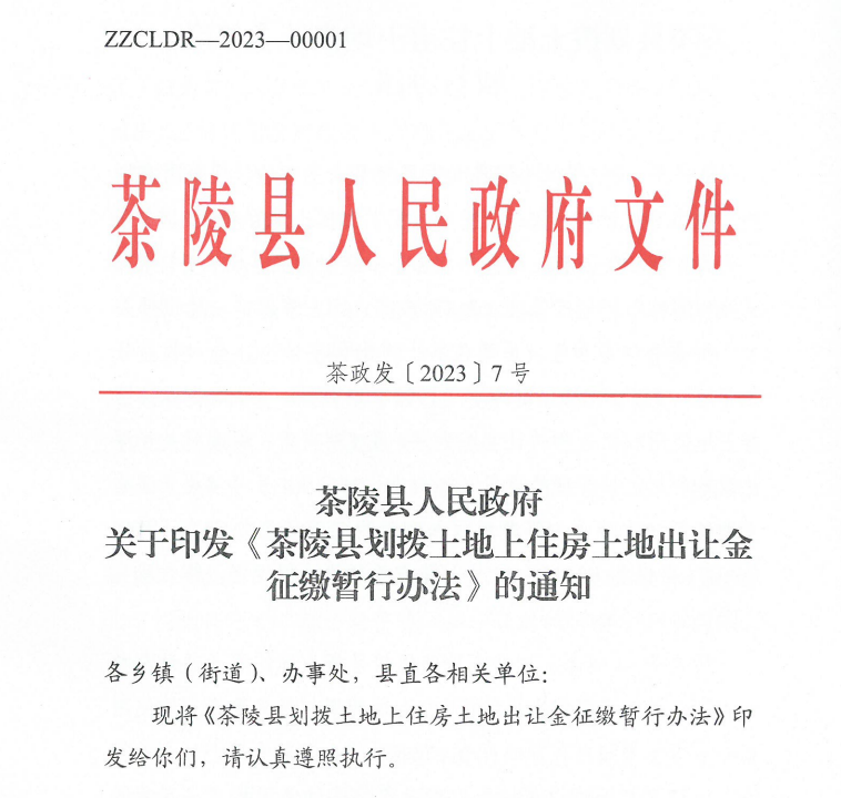 茶陵县人民政府关于印发《茶陵县划拨土地上住房土地出让金征缴暂行办法》的通知