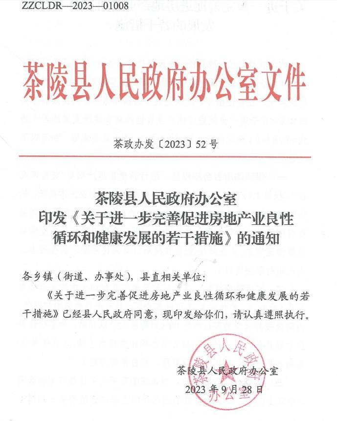 茶陵县人民政府办公室印发《关于进一步完善促进房地产业良性循环和健康发展的若干措施》的通知