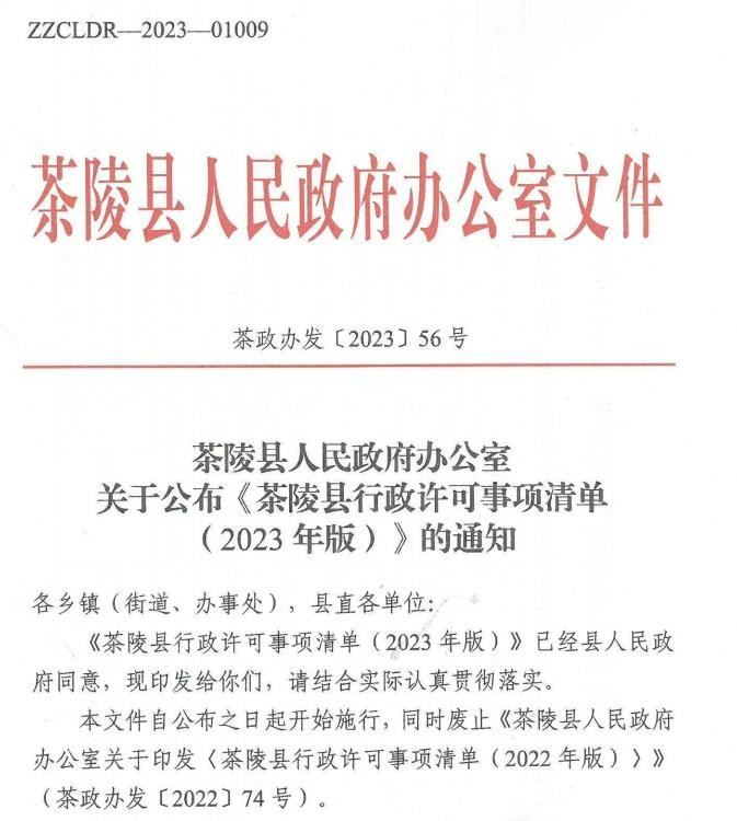 茶陵县人民政府办公室关于公布《茶陵县行政许可事项清单 (2023年版)》的通知