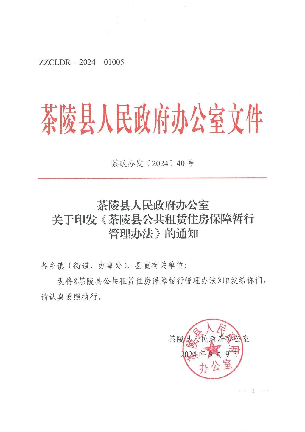 茶陵县人民政府办公室关于印发《茶陵县公共租赁住房保障暂行管理办法》的通知
