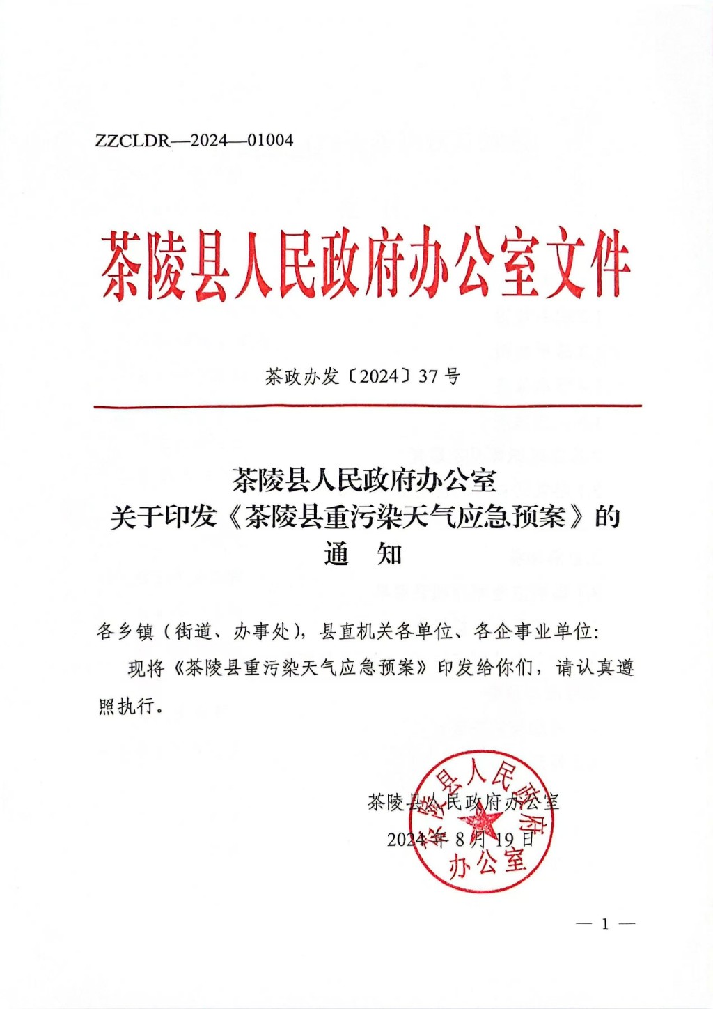 茶陵县人民政府办公室关于印发《茶陵县重污染天气应急预案》的通知