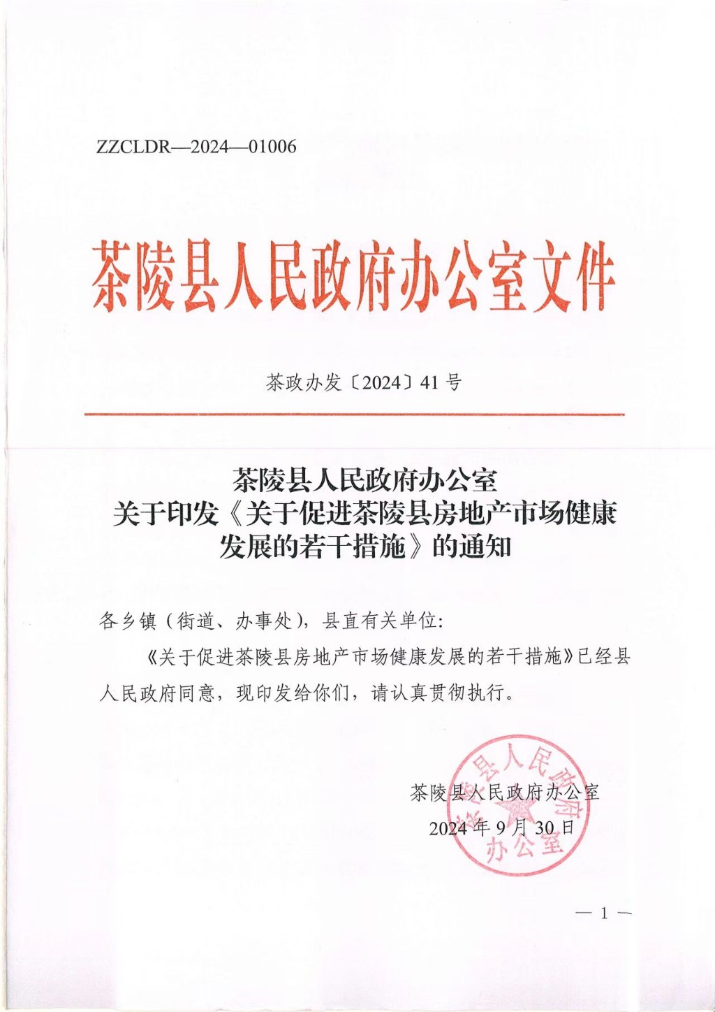 茶陵县人民政府办公室关于印发《关于促进茶陵县房地产市场健康发展的若干措施》的通知