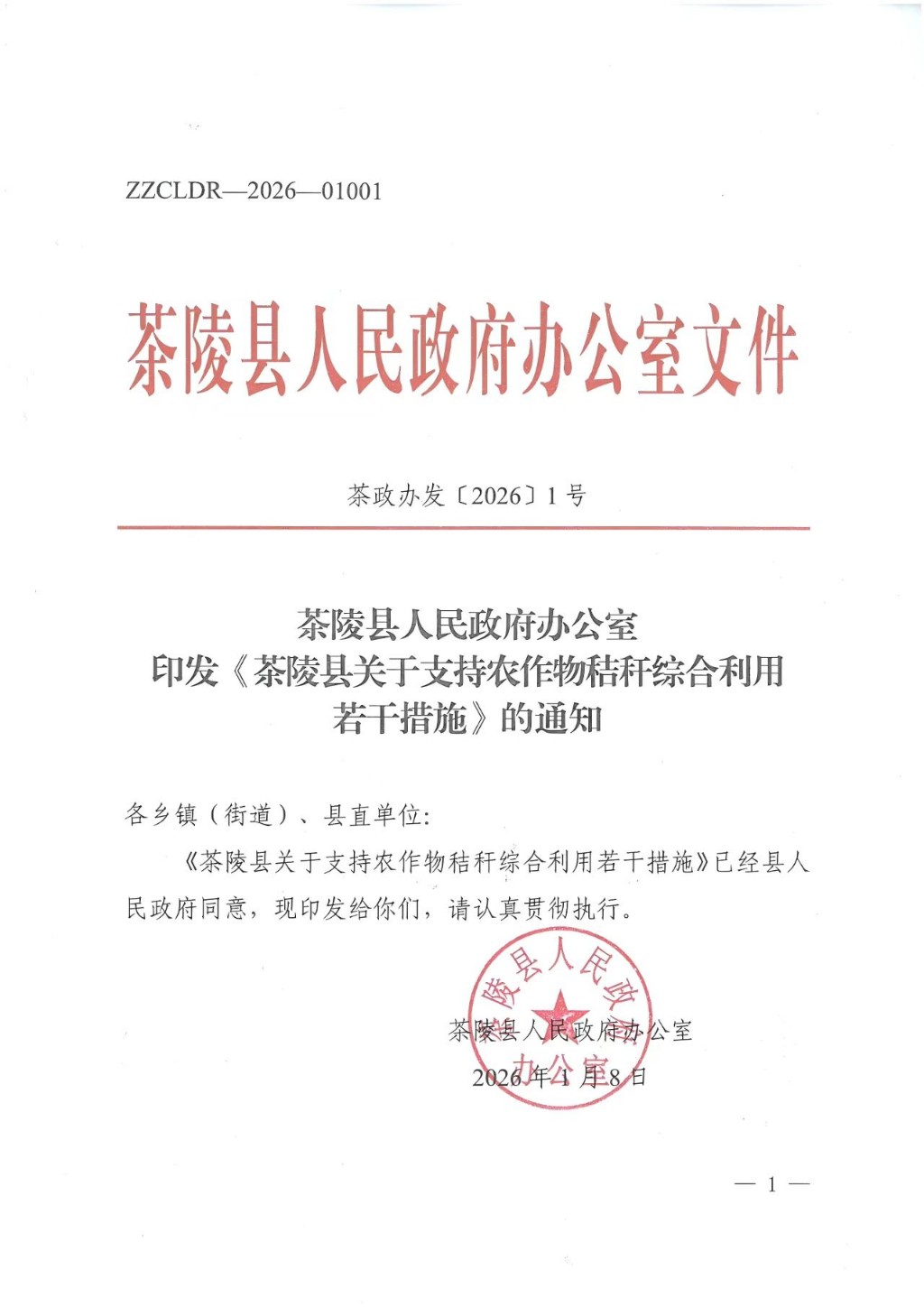 茶陵县人民政府办公室印发《茶陵县关于支持农作物秸秆综合利用若干措施》的通知