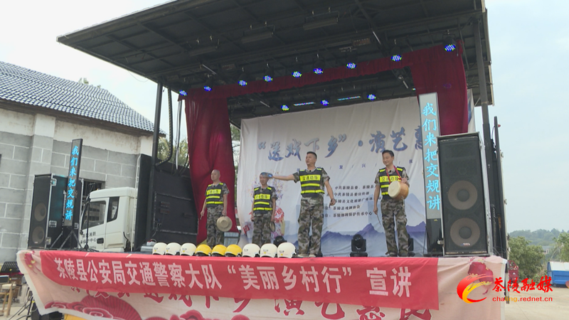 11月10日,茶陵县交警大队借力“送戏下乡演艺惠民”戏曲大舞台,来到枣市镇荆芜村开展“美丽乡村行”交通安全巡回宣讲活动,让广大群众在享受传统戏曲文化的同时,也能牢固树立起交通安全防线,进一步增强辖区群众的交通安全意识和文明出行意识。
