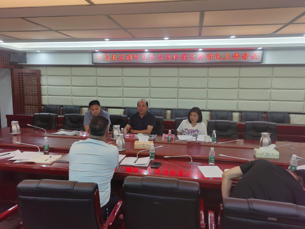 为做好信访工作,保证全市国土领域和谐稳定,2023年7月5日,株洲市自然资源和规划局尹国好、王承才、胡丹来我局召开信访积案工作调度会,调研和指导信访积案化解工作。