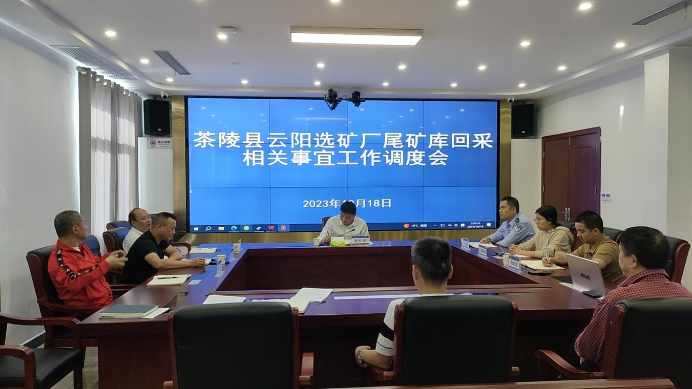 为协调化解云阳选矿厂尾矿库与当地村组的利益纠纷,推动尾矿库按期顺利完成清库销号,10月18日,县政府四级调研员胡松田牵头召开云阳选矿厂尾矿库回采相关事宜工作调度会,县公安局、应急局、自然资源局、生态环境局、思聪街道及当地村委、相关尾矿库企业参加会议。