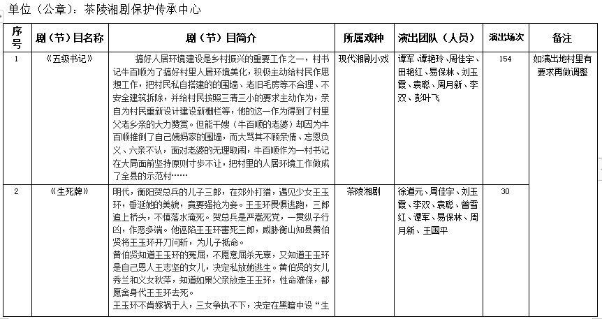 “湖南公共文化进村入户·戏曲进乡村”2023年剧(节)目目录认定表
